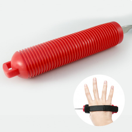 La poignée profilée, en caoutchouc souple (garantie sans latex) de 3,5 cm de large, épouse la forme de la main et limite tout glissement, permettant une prise ferme et rassurante, même avec la main humide ou tremblante. Cette ergonomie est adaptée aux personnes souffrant de rhumatismes, de Parkinson, de perte de force musculaire ou d’engourdissement.