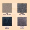 Disponible en plusieurs coloris élégants (saphir, galène, beige amande, gris chiné), il s’accorde avec tous les styles d’intérieur. Les revêtements en PVC répondent à la norme non-feu M1, le tissu chiné aux normes non feu EN 1021.1 et EN 1021.2 et les velours aux normes non feu EN 1021.1.
