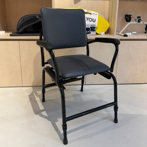 Elle profite d'une assise et d'accoudoirs rembourrés pour son confort et sa praticité. Sa hauteur est réglable pour s'adapter aux différentes morphologies.