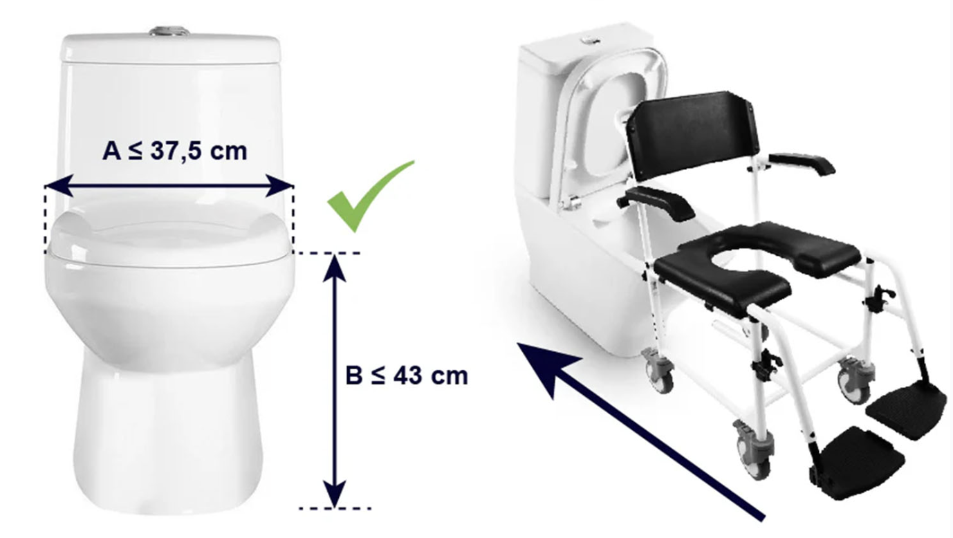 Les mesures à prendre pour positionner la chaise de douche à roulettes Tarifa :