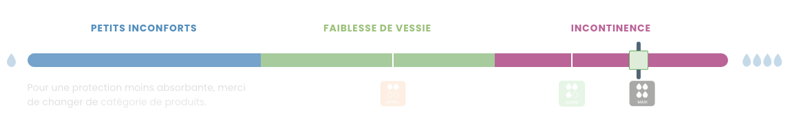Le niveau d’absorption Maxi est adapté aux fuites urinaires importantes. Il offre une protection renforcée pendant plusieurs heures.