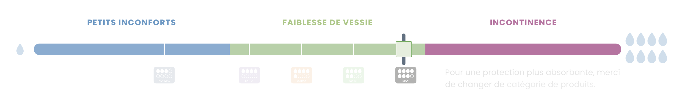 | degré d'incontinence | Léger 100 - 600 ml, Modéré 600 - 900 ml, Sévère 900 - 1500 ml |