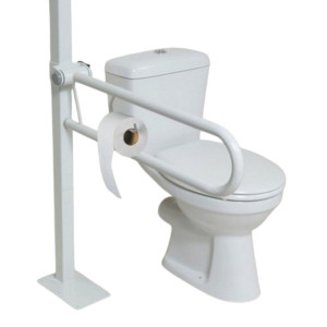 Version réglable en hauteur de la barre d'appui Devon maintenue sur une colonne fixée au sol.