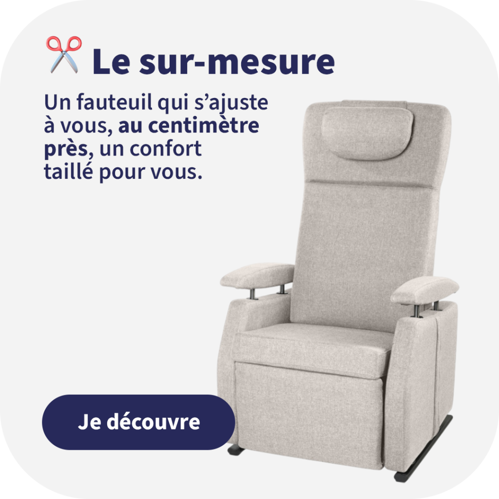 - Fauteuil releveur 3/4 Moteurs : Ajout de la bascule d’assise (Zéro Gravité) ou des réglages lombaires/cervicaux pour un confort sur-mesure.