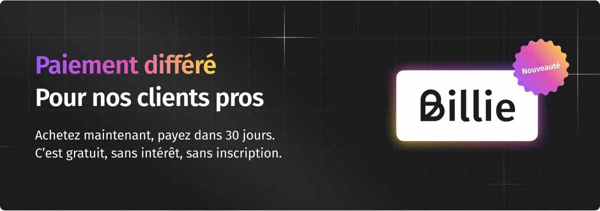 Nous sélectionnons nos partenaires avec la même exigence que nos produits. Nous avons choisi Billie pour la fiabilité de sa technologie, la sécurité de ses paiements et la simplicité de son expérience utilisateur. Cette solution nous permet d’offrir à nos clients professionnels un moyen de paiement flexible, tout en garantissant une gestion claire et sécurisée de leurs achats. Avec Billie, nous facilitons les transactions B2B et renforçons notre engagement : rendre l’autonomie accessible à tous, y compris dans la gestion de vos achats professionnels.