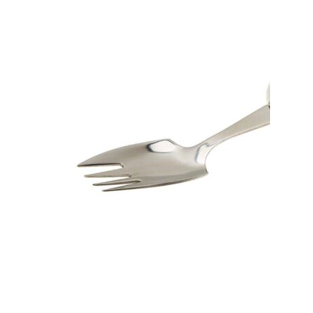 Creuse et profonde, cette fourchette peut parfaitement être utilisé comme cuillère. De plus, les rebords coupent la nourriture.