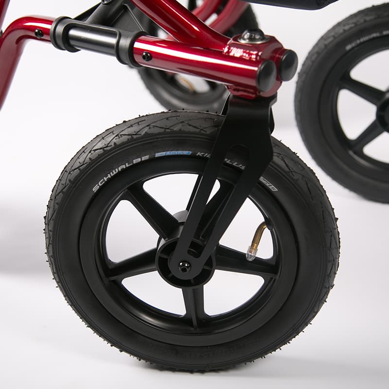 Comme nous vous disions précédemment, le déambulateur Taima est incontestablement un déambulateur tout-terrain, il sera aussi bien à l'aise en zone rurale qu'en zone urbaine. Ce confort sur tous les terrains est grâce à sa robustesse et ses roues gonflables de plus de 30 centimètres de diamètre. En effet, le fait que les roues soient gonflables y joue pour beaucoup. Contrairement à de nombreux déambulateurs qui disposent de roues pleines, le déambulateur Taima se démarque avec ses grandes roues gonflables, offrant un confort et une stabilité inégalable. Désormais, vous pourrez faire vos sorties sur des terrains irréguliers, en ville comme en campagne, sans vous soucier de votre confort.