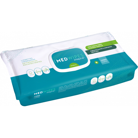 100 Lingettes désinfectantes biodégradables sans alcool MEDWIPES