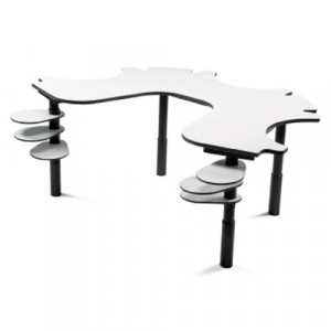 La table ergotechnik 3+1 n'est pas fournie avec les tablettes latérales présentes sur les visuels. Il s'agit d'un accessoire. Pour le consulter, cliquez ici.