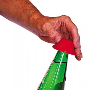 L'ouvre bouteilles s'adapte aux principaux types de bouteilles. Ce produit permet aux personnes souffrant d'arthrite ou d'un trouble musculaire de pouvoir ouvrir une bouteille plus facilement. La forme extérieure en dôme de l'objet fournit une poignée souple et flexible, cannelée pour offrir une adhérence ferme lors d'une prise avec des doigts et le pouce et/ou la paume de la main.