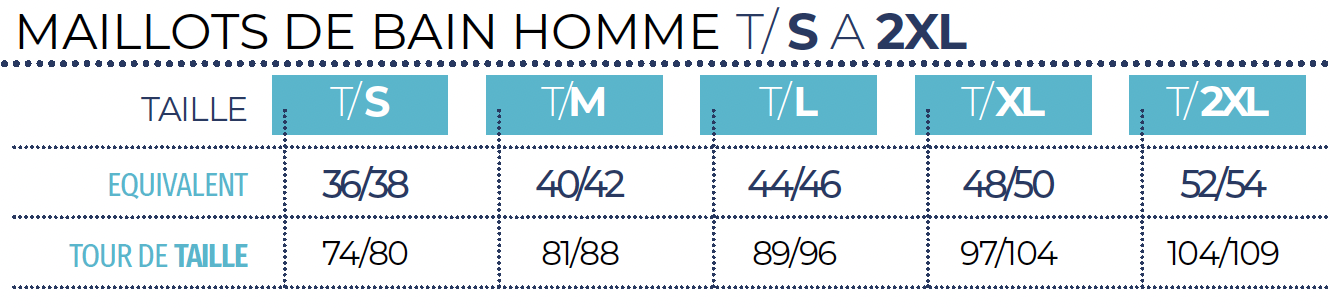 Ajustement parfait : cordon de serrage à la taille, large choix de tailles (S, M, L, XL), tour de cuisse élastiqué pour s’adapter à chaque morphologie, et garantir le confort même lors de longues sessions de baignade.