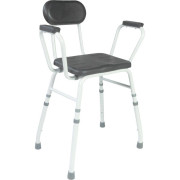 - Sécurisante, la chaise de douche ou de cuisine dispose d'accoudoirs pour se lever avec facilité.