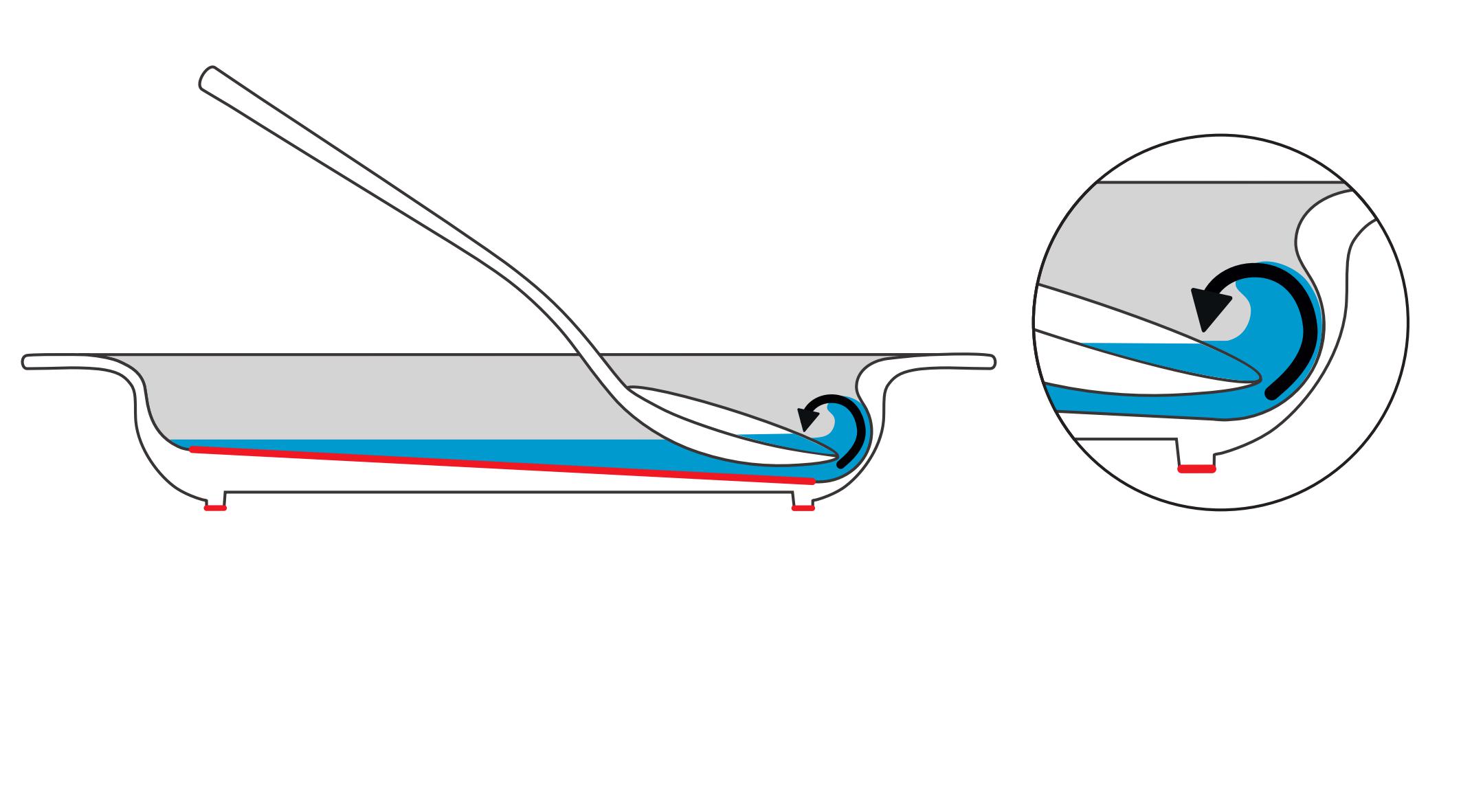 Le rebord incliné et le large bord intérieur jouent un rôle clé : ils permettent de ramener la nourriture sur les couverts sans que celle-ci ne s’échappe, évitant ainsi frustration et maladresse. Cet obstacle invisible s’oppose à la chute des aliments, facilite la prise même des mets les plus difficiles (purées, desserts, compotes, céréales…) et sécurise le geste.